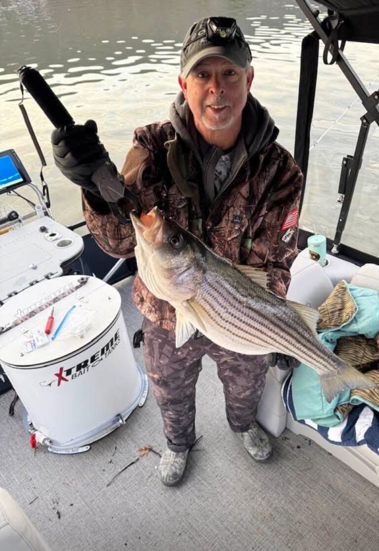 Use large shad that can be little tricky to obtain depending on the day this time of year. Foccus on backwater 5′ or less. Also, bottom fishing with cut bait can be highly productive in mid 40 degree water. Use circle hooks and 3/4 Oz weights. Cut shad in 3 sections. Foccus on breaks and transitions. Have your baits in 12 – 20′. Good for Stripers and Catfish.